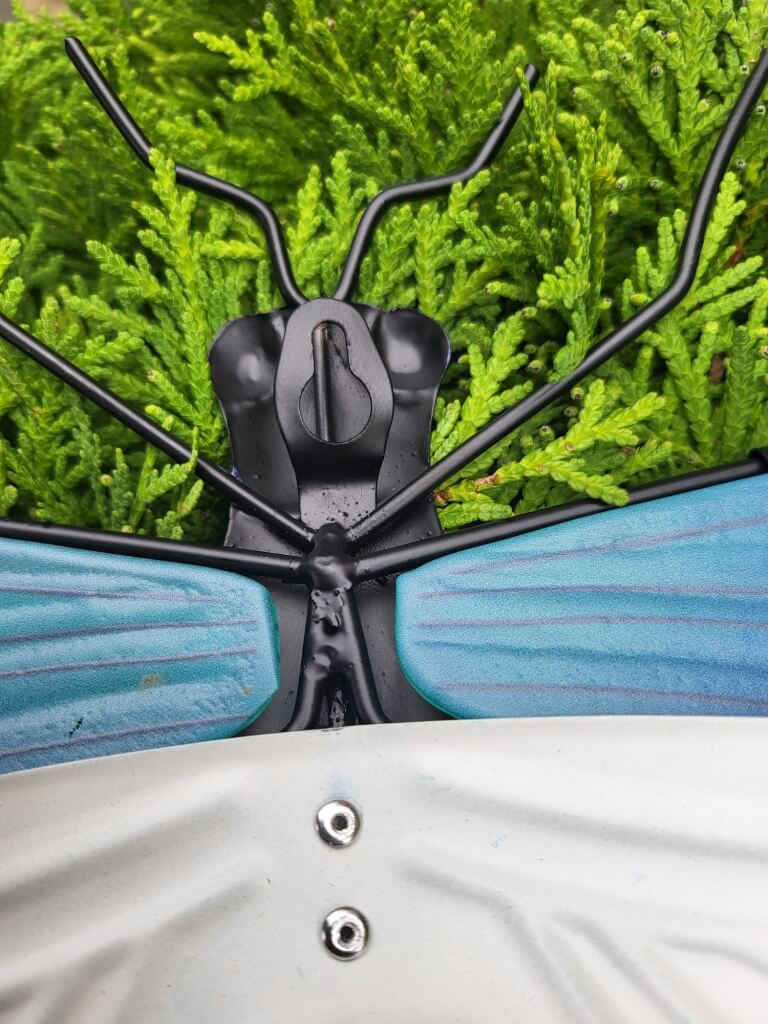 Auf der Rückseite ist eine Öse angebracht, an der die Libelle an einer Wand, einem Holzzaun oder ähnlichem befestigt werden kann.