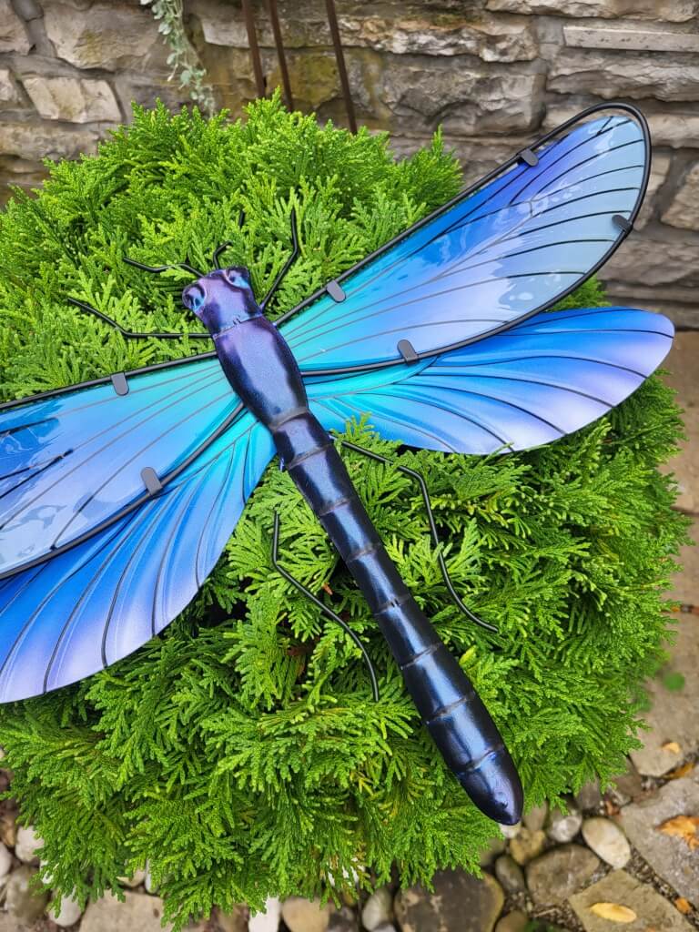(Zur längeren Haltbarkeit sollte die Libelle im Winter an einem geschützten Platz verbringen - dieses Glas ist nicht winterfest)