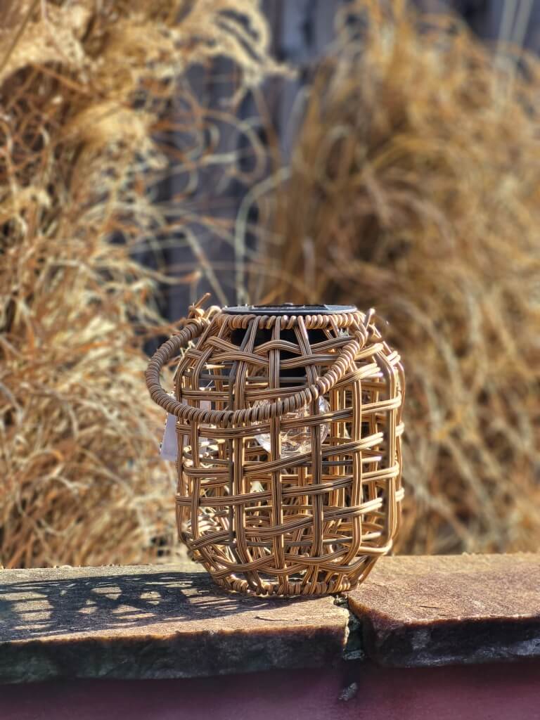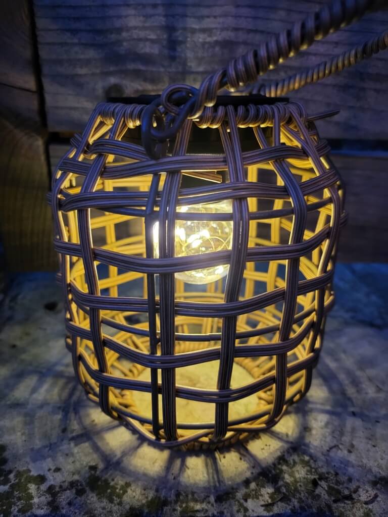 Die Lampe besticht durch ihr natürliches, geflochtenes Design und ökologischer Beleuchtung, Dank Solarpaneel.