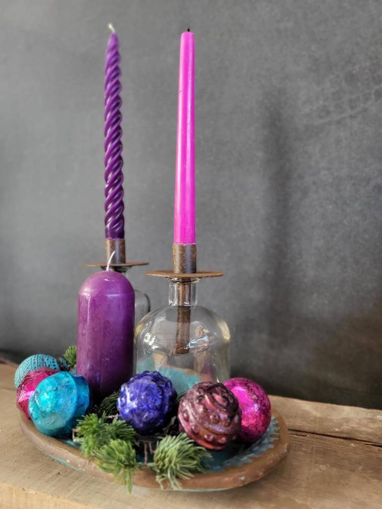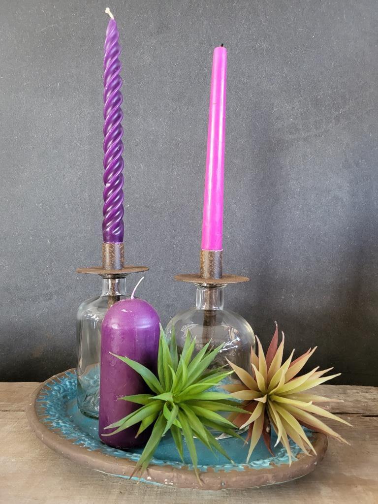 Er kann zur Tischdeko verwendet werden und mit Blumen, Kerzen oder saisonal mit bunten Farben dekoriert werden.