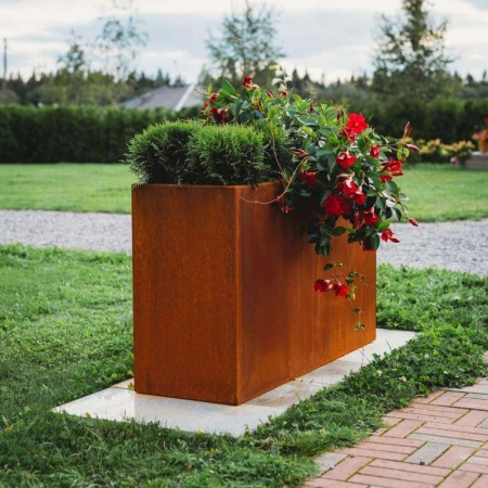 Der Pflanzkübel ist aus 2 mm Cortenstahl für eine lange Haltbarkeit gefertigt.