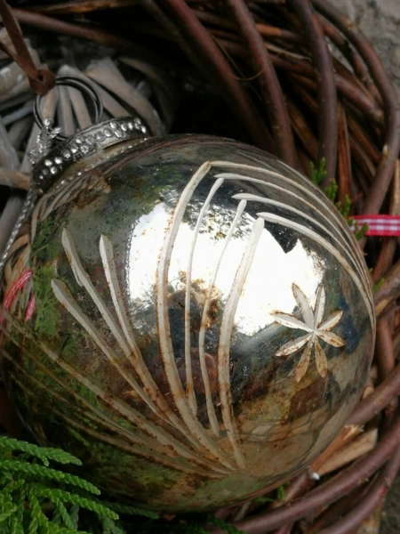 Die Farbe der Kugel ist in antikgold, mit bräunlichen Highlights, gehalten und fügt sich somit in jede bestehende Deko ein.