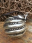 Diagonal laufende Streifen und kleine Punkte zieren diese Christbaumkugel "Corvinia", welche in altgold mit schwarz gehalten ist.