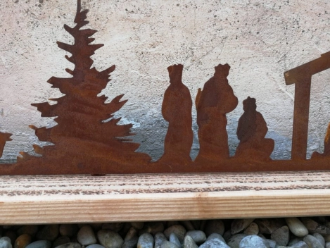 Alle nötigen Figuren (Bäume, Tiere, die heiligen drei Könige, Maria, Josef und das Jesuskind) sind auf einem schönen Holzbrett fixiert und verbreiten sofort weihnachtliche Stimmung im Innenbereich oder den überdachten Außenbereich.