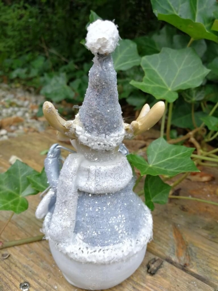 Er ist aus Polyresin gefertigt und hält einen Stern in beiden Händen und fügt sich wunderbar in eine weihnachtliche Tischdeko ein.