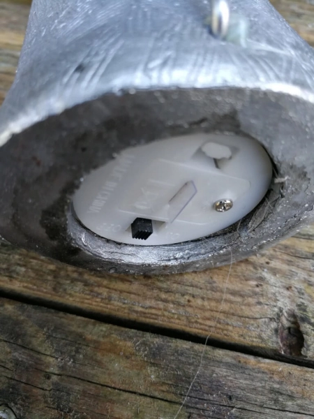 Der Engel ist aus Polyresin gefertigt und mit kleinen LED-Lichtern am Stern ausgestattet. Der On/Off-Schalter befindet sich am Boden.