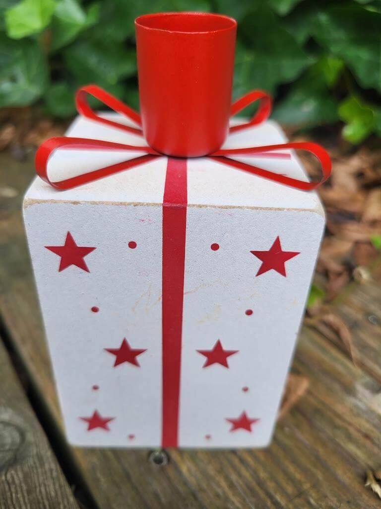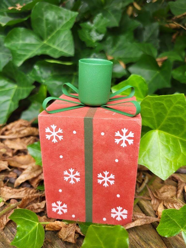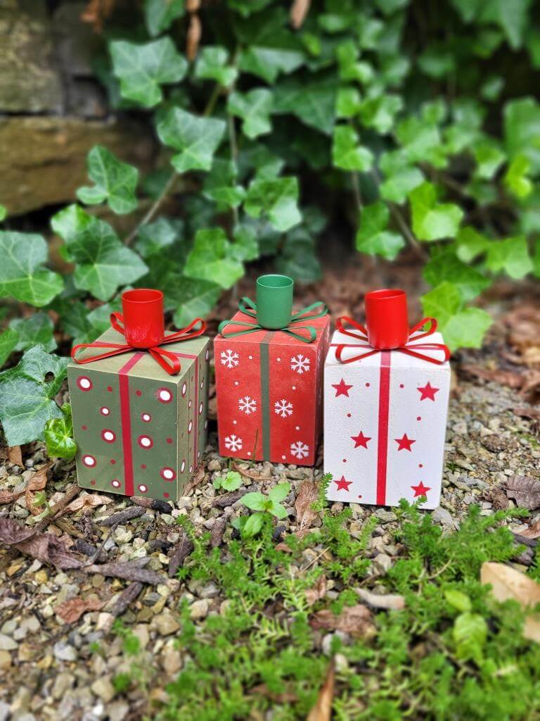 Eine außergewöhnliche Deko zu Weihnachten sind diese Holzpäckchen für Spitzkerzen.