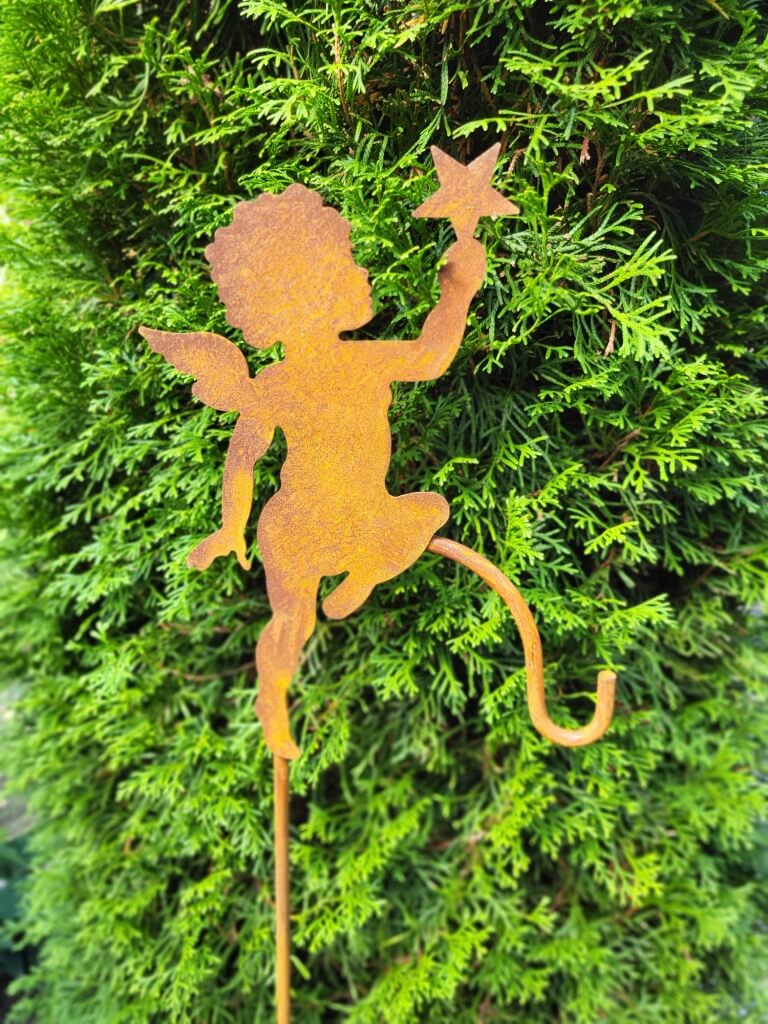 Ein schlichter, massiv gearbeiteter Edelrost Gartenstecker bzw. Ampelhalter, der sich hervorragend zum Anhängen von kleineren Dekostücken oder Laternen und Windlichter eignet.