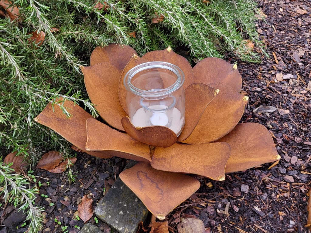 Eine sehr aufwändig, massiv und außergewöhnlich gearbeitete Echeveria aus Edelrost.
