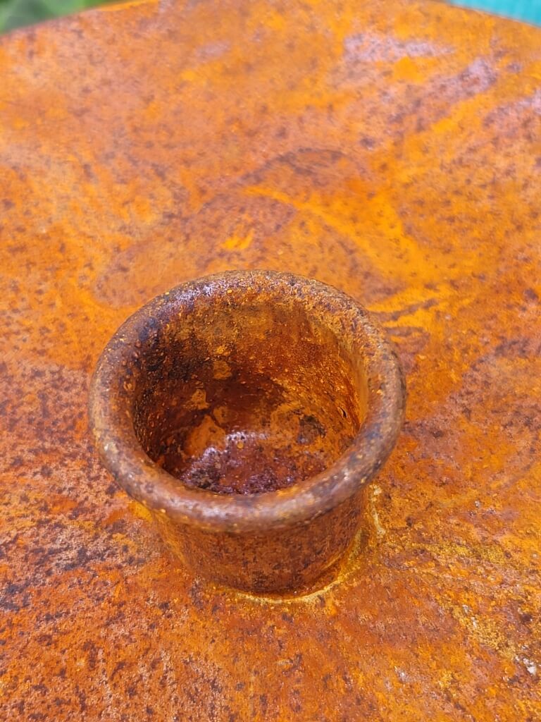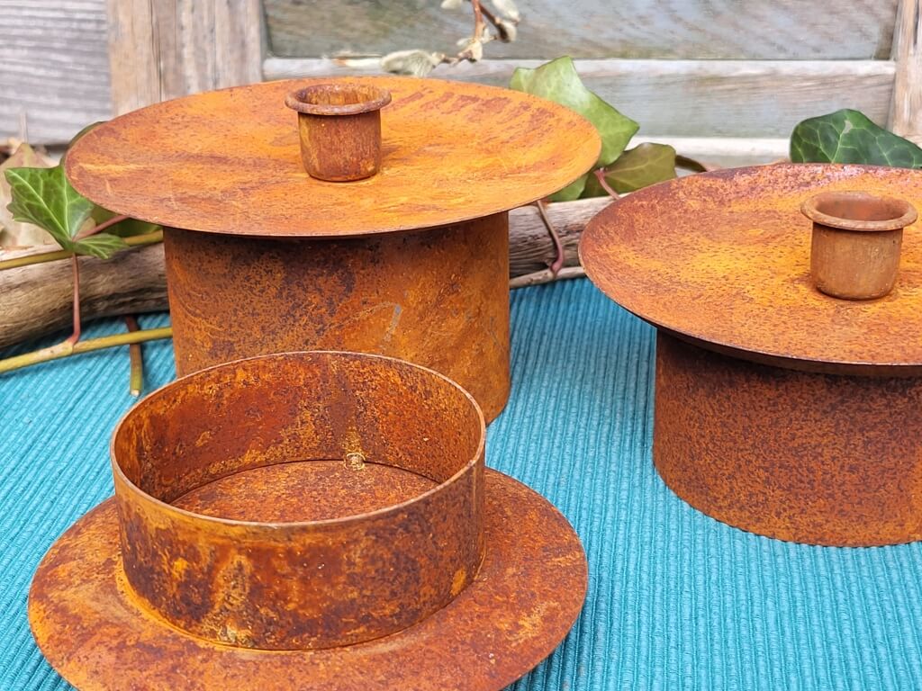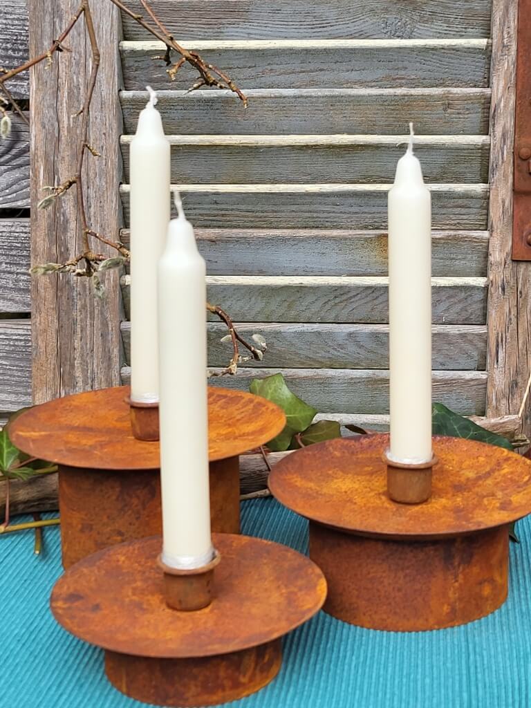 Ein massiver Edelrost Kerzenhalter für Spitzkerzen zum Stellen.