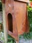 Unser massives Edelrost Vogelhaus "Loris" besticht durch seine imposante Größe, sein ausgefallenes, asymmetrisches Design und Funktionalität.