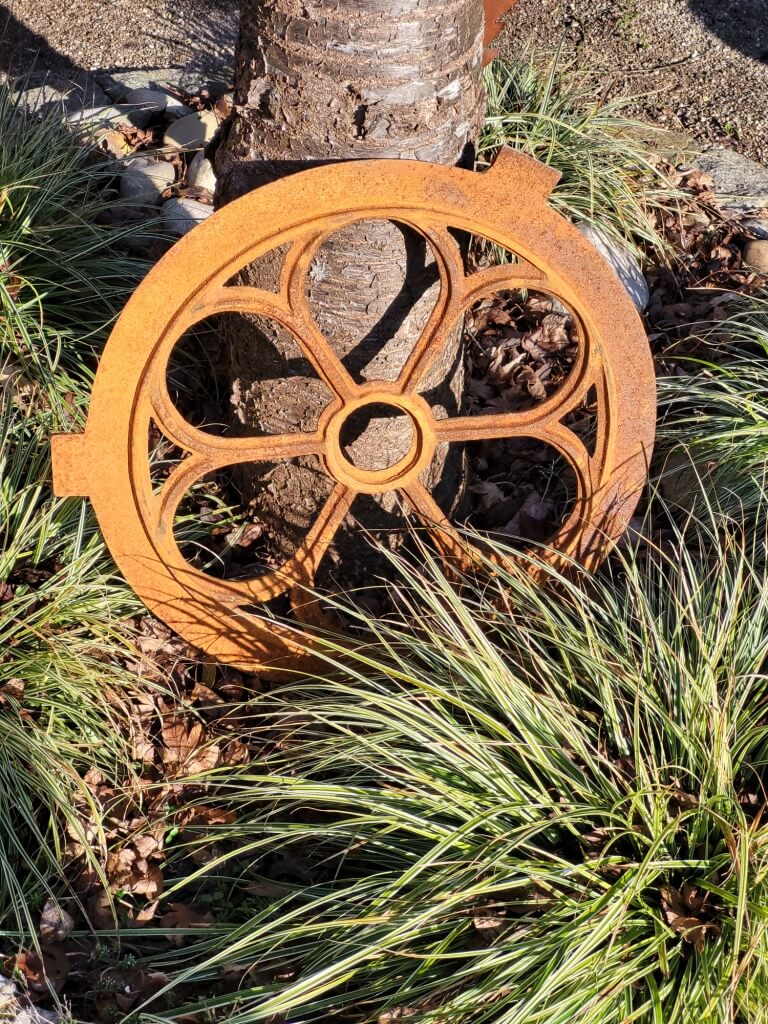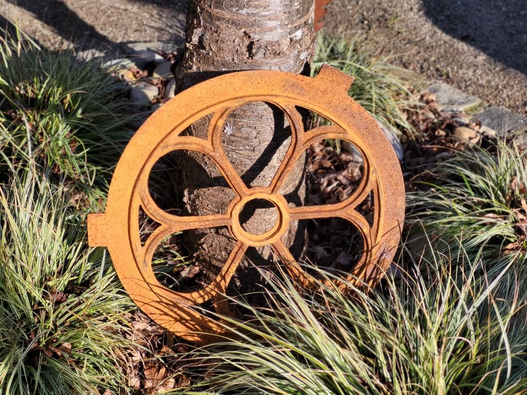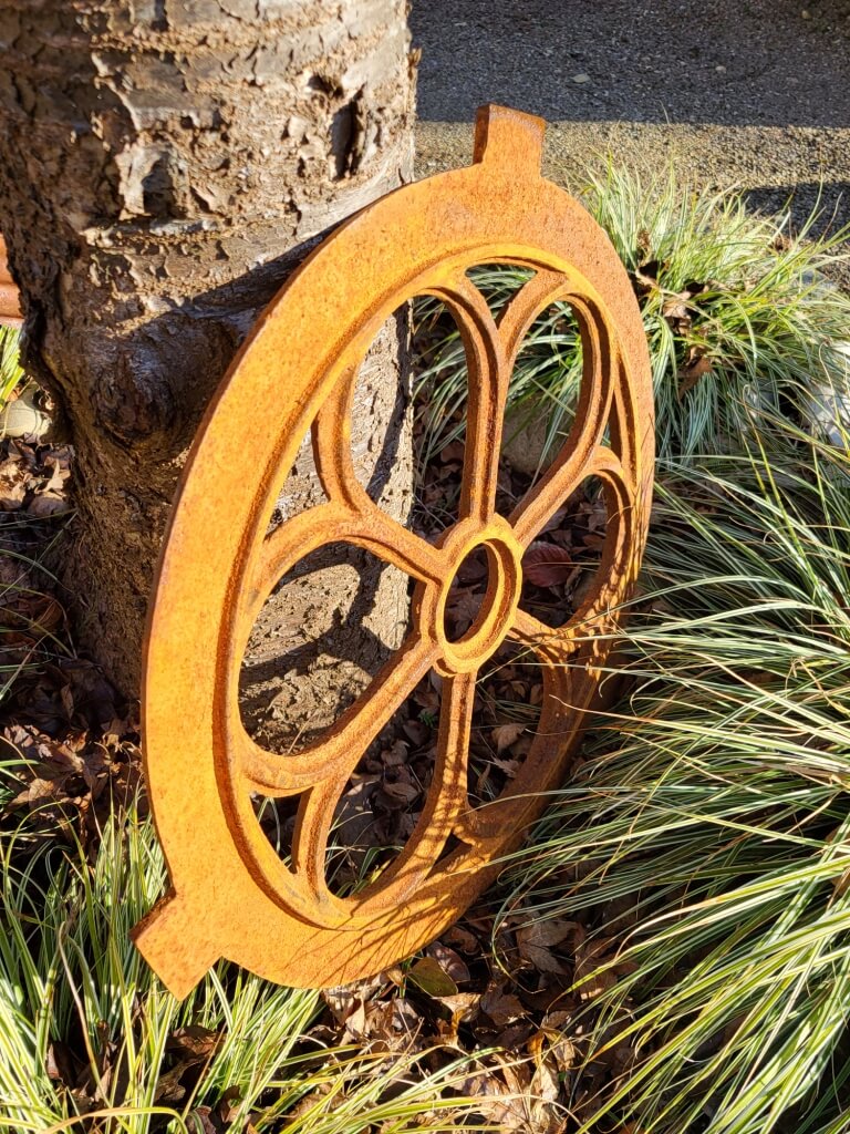 Ein absoluter Hingucker ist dieses massive Gusseisen Dekofenster rund, im Edelrostfinish.