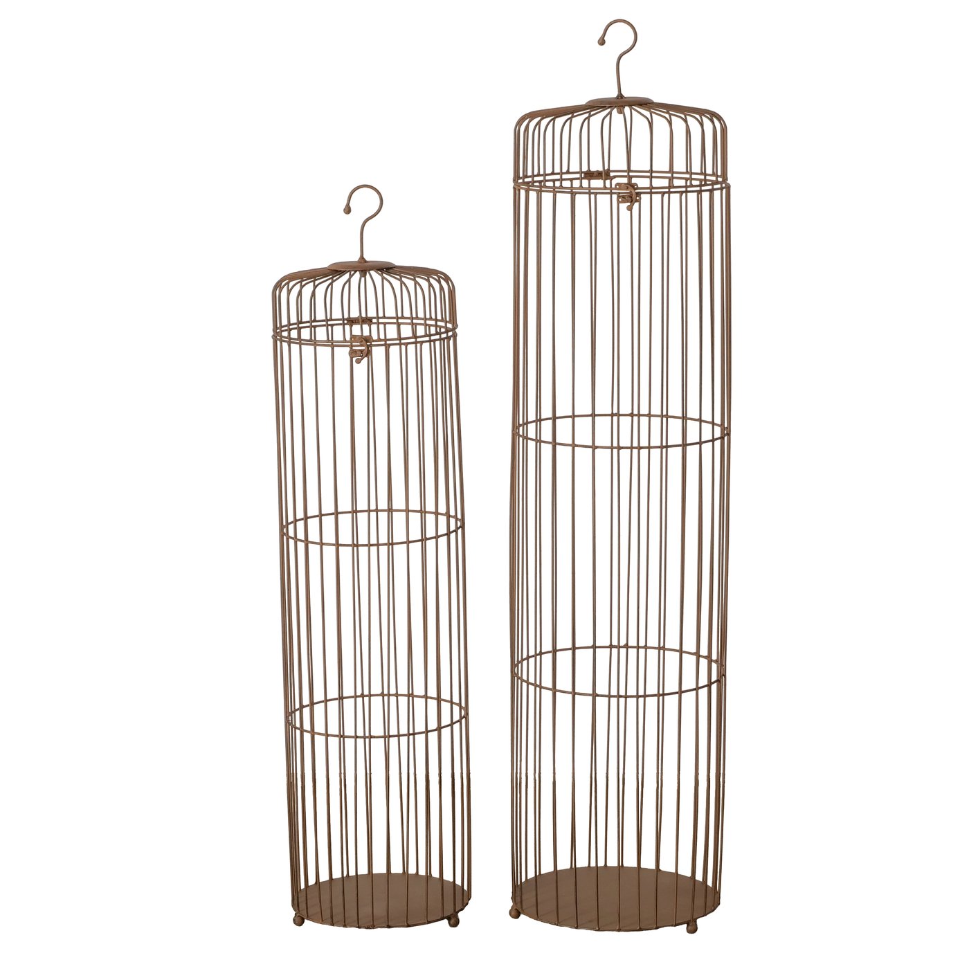 Die runde Form sowie die matt gehaltene Oberfläche unterstreichen das Landhaus-Design diese freistehenden Vogelkäfigs.
