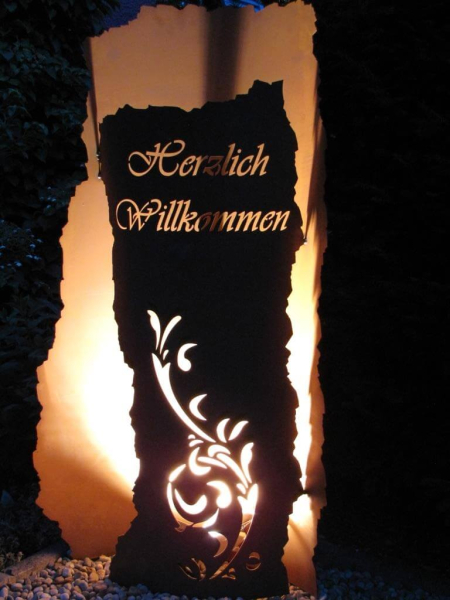 Edelrost Dekostele romantisches Willkommen mit Glaskugel