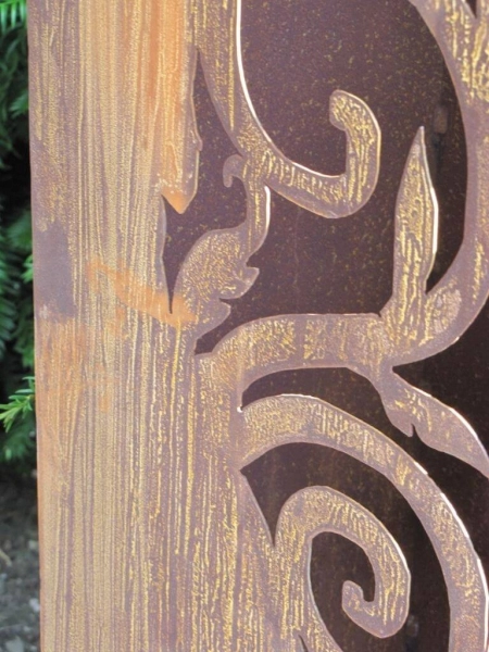 Die schöne Edelrost Dekosäule ist mit einer wunderbar filigran gearbeiteten Eule versehen, die sich über zwei Seiten erstreckt.