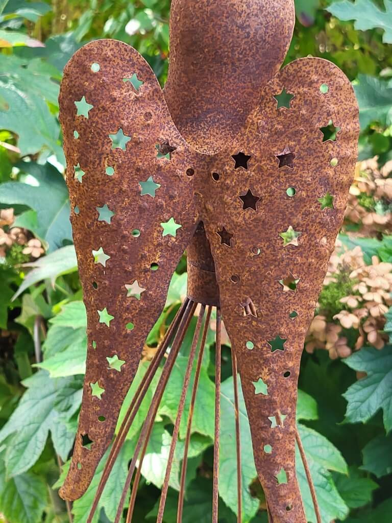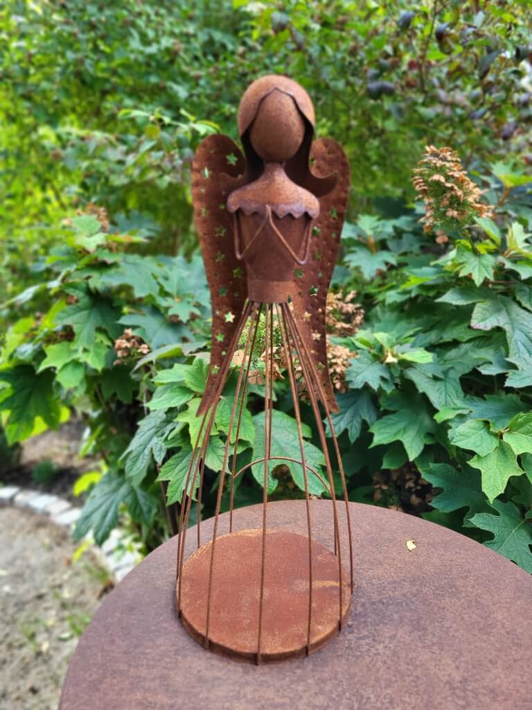 Der rustikal gearbeitete Engel Diara kann als Windlicht verwendet werden und fügt sich in jede bestehende Deko hervorragend ein.