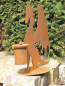 Stolz und aufrecht sitzt der Edelrost Drache auf der angeschweißten Platte.