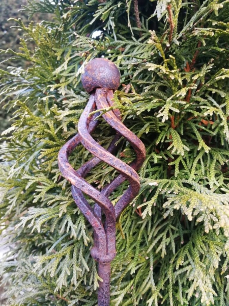 Aus massivem Rundeisen gefertigt mit Edelrost Patina und passend für jedes Blumenbeet als optisches Highlight.