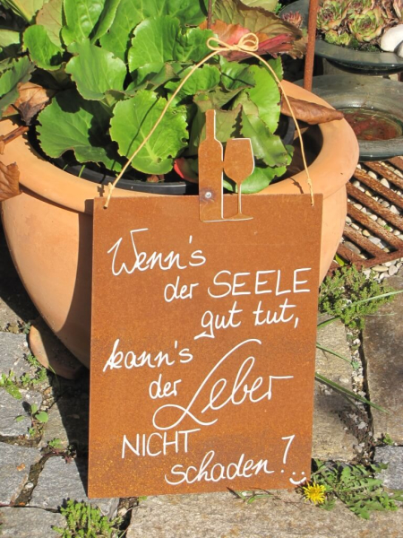 Edelrost Schild mit Weinflasche "Wenn´s der Seele..."