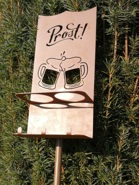 Edelrost Gartenstecker Getränkehalter "Prost"