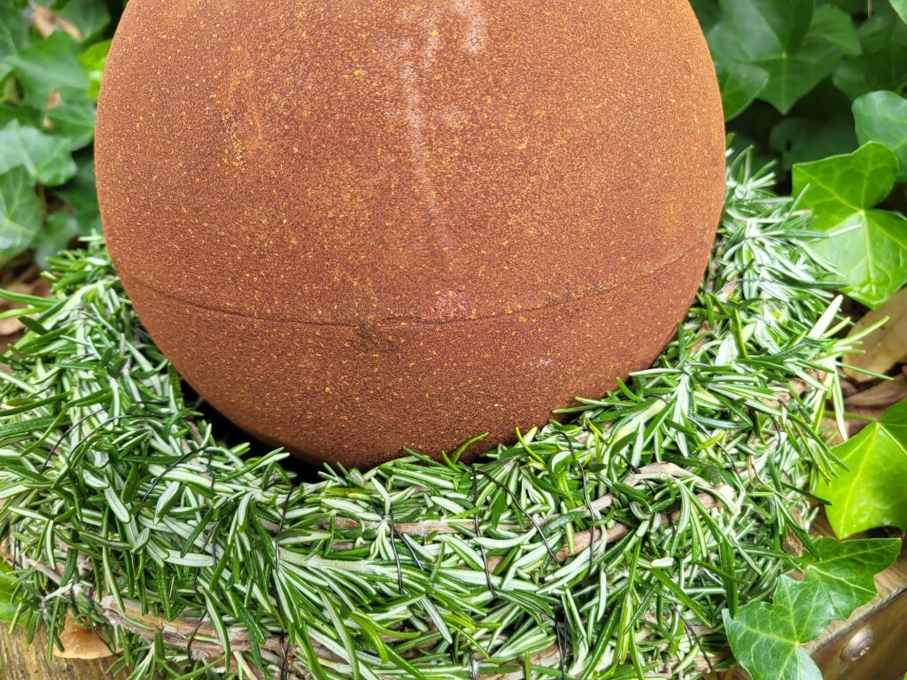Eine schlichte und moderne Dekoration für allerlei Schalen oder Blumentöpfe sind die leichteren Edelrost Kugeln im Miniformat.