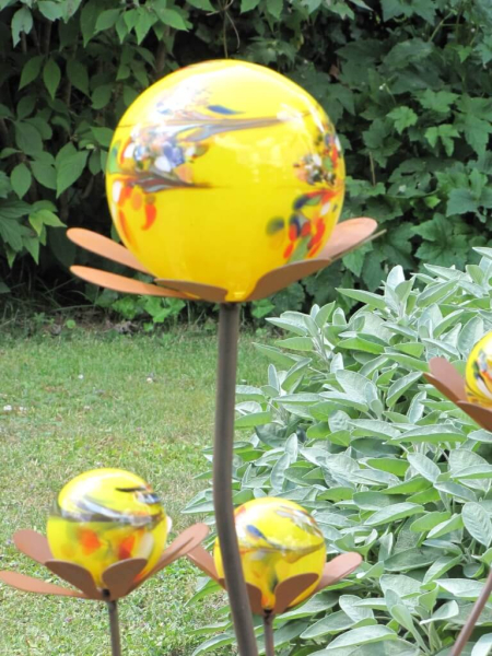 Edelrost Glasblume Ferrum, gelbe Kugeln