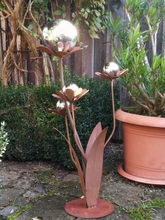Edelrost Blume Ferrum mit Edelstahlkugeln