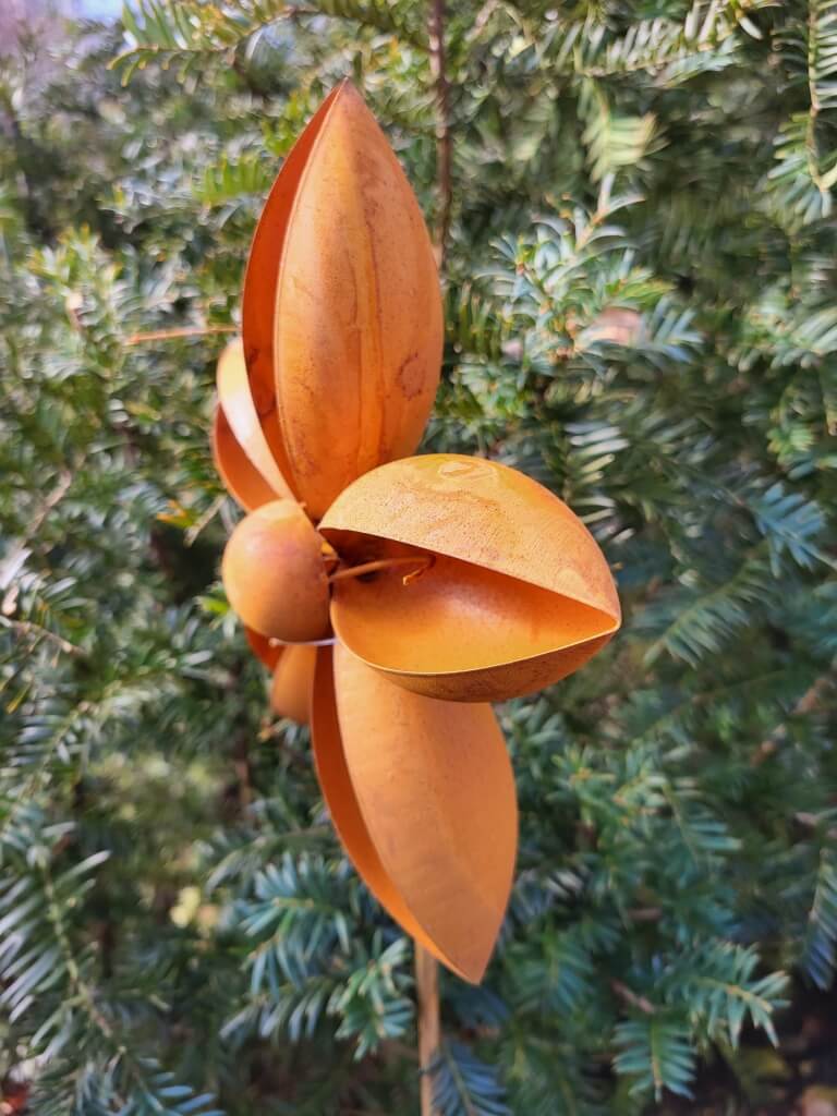 Unsere Edelrost Blume Rosalinde ist die perfekte Ergänzung im Blumenbeet oder einem Pflanztopf, einfach in den Boden stecken und schon sind zieht ein Hingucker ein.