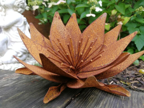 Schwimmen kann diese "Königin des Gartenteichs" nicht, aber dafür sieht sie extrem gut aus, unsere kleine Seerosenblüte aus Edelrost.