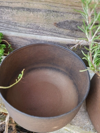 Die Pflanzkübel sind aus Metall gefertigt und besitzen kein Wasserablaufloch. Sie können direkt bepflanzt oder als Übertopf verwendet werden.