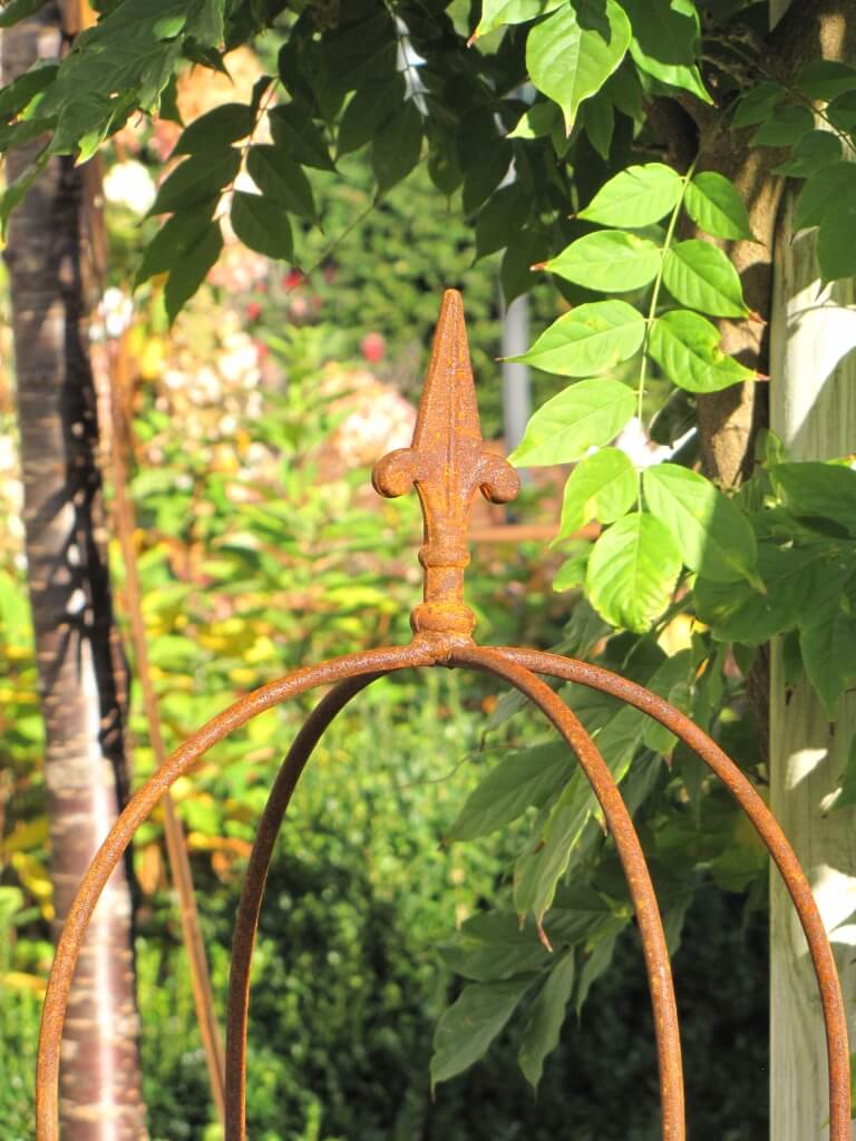 Die Rankhilfe ist massiv gearbeitet, lenkt aber mit Ihrer Schlichtheit nicht von den Pflanzen ab.