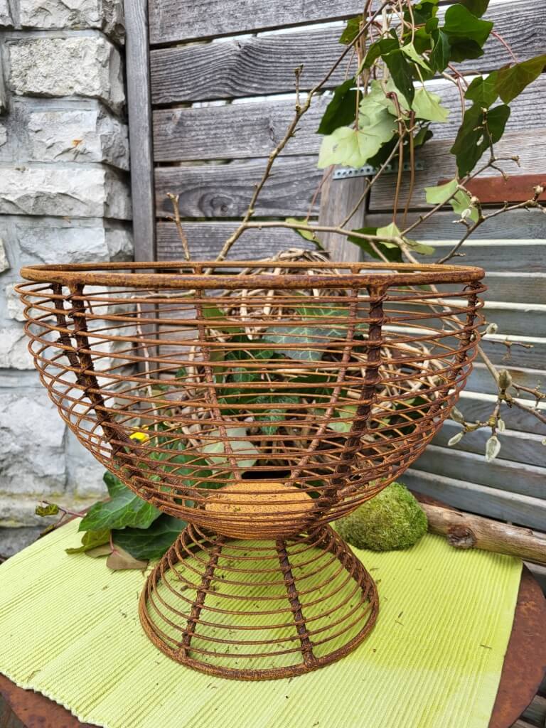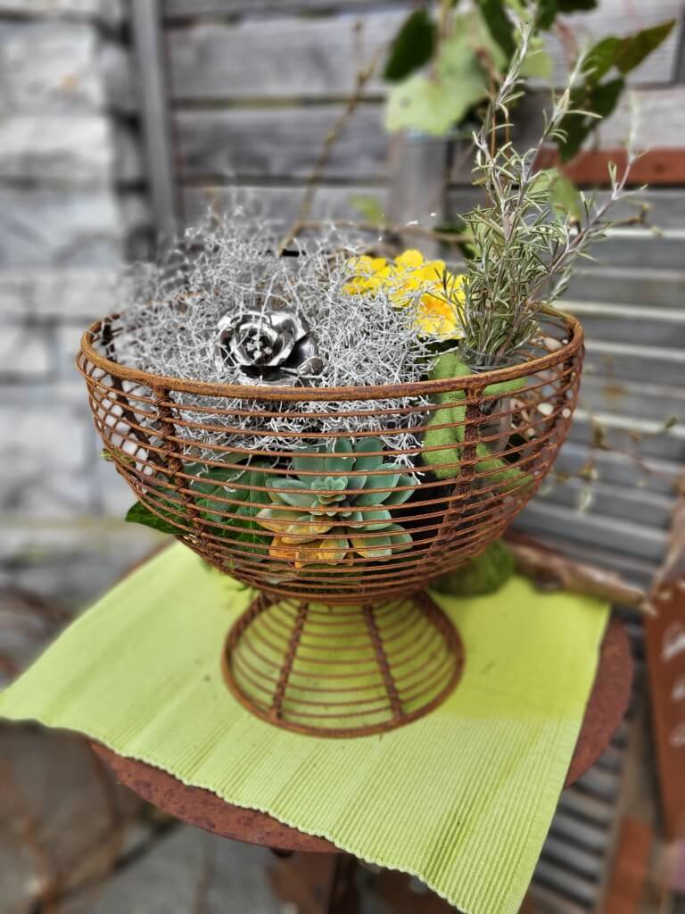 Der Korb kann auch, wenn er beispielsweise mit einem Kokoseinsatz versehen wird, wunderbar bepflanzt werden.