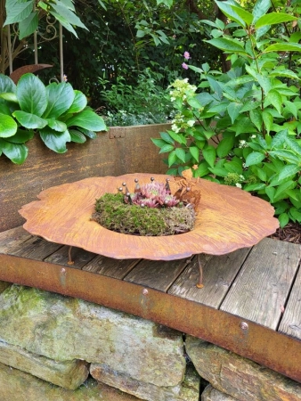 Sie können die Edelrost Schale entweder für jahreszeitliche Dekorationen nutzen oder als flache Feuerschale verwenden.