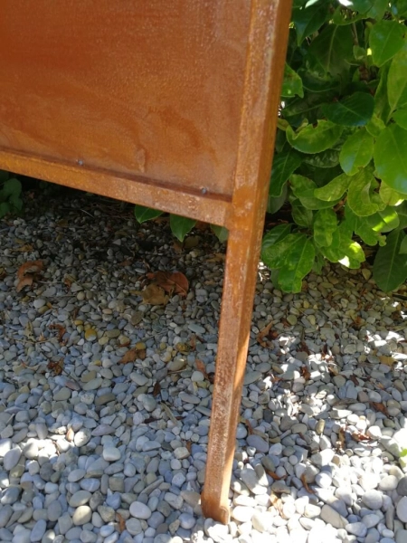 Der Paravent kann Dank der langen Spieße einfach in die Erde gesteckt werden oder natürlich auch einbetoniert werden.