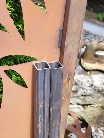 Der Edelrost Paravent "Schirmbambus" kann sowohl als Dekoelement, sowie natürlich als Sichtschutz zum Einsatz kommen.