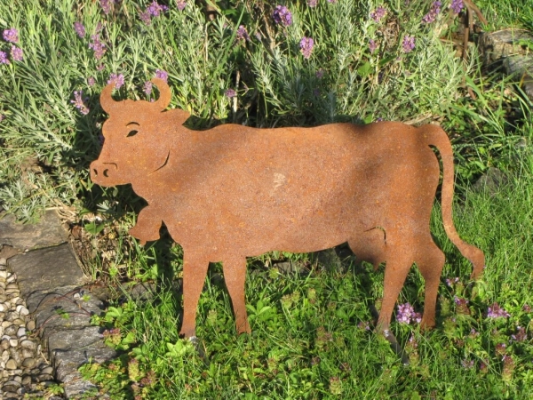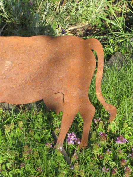 Unsere Edelrost Kuh ist sehr detailgetreu gearbeitet und findet Dank ihrer Größe auch in kleinen Blumenbeeten einen schönen Platz.