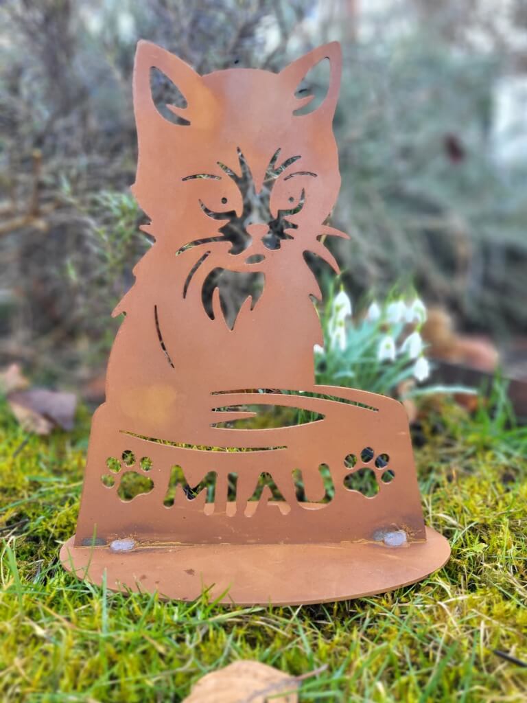 Mobile Preview: Edelrost Kätzchen mit Napf
