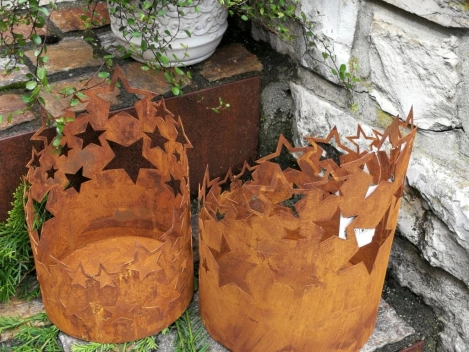 Das Windlicht ist leicht asymmetrisch geschnitten und hat in der oberen Hälfte viele, filigrane Sterne, die ein tolles Schattenspiel ergeben.