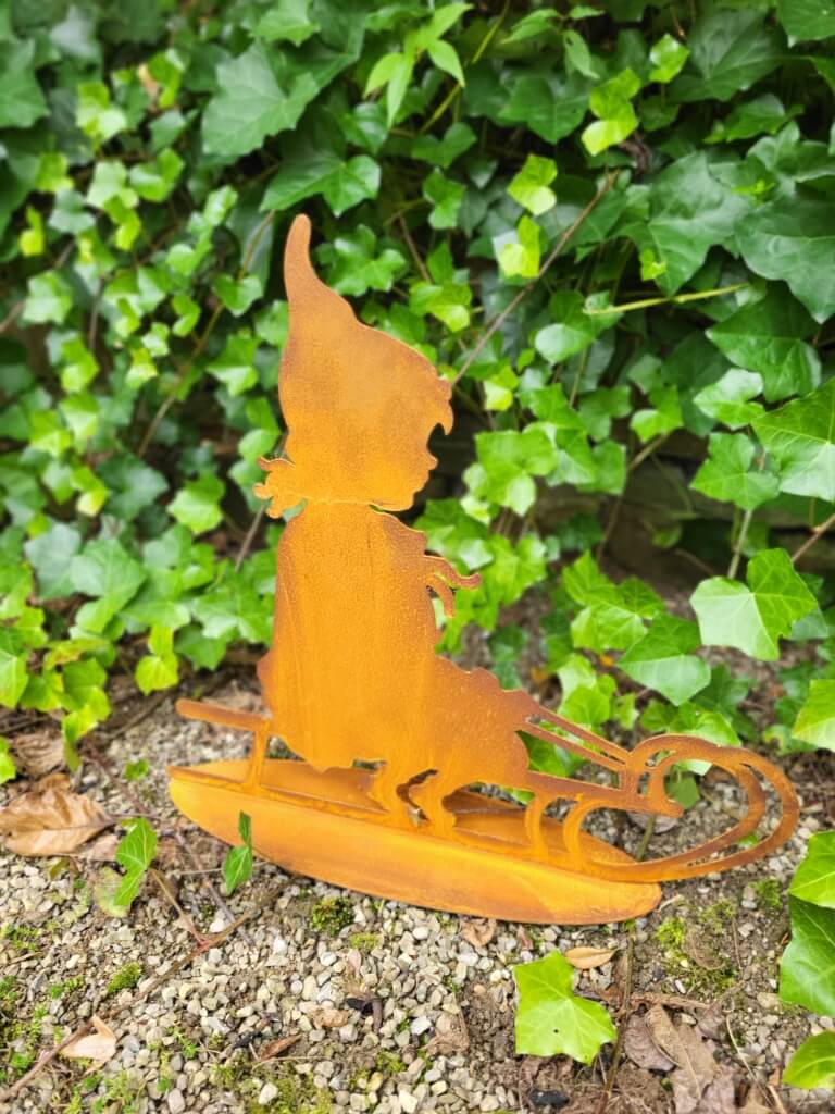 Eine tolle Figur, die unsere Erlebnisse aus der Jugend wiederspiegelt und gerade im Winter eine schöne Bereicherung im Garten ist.