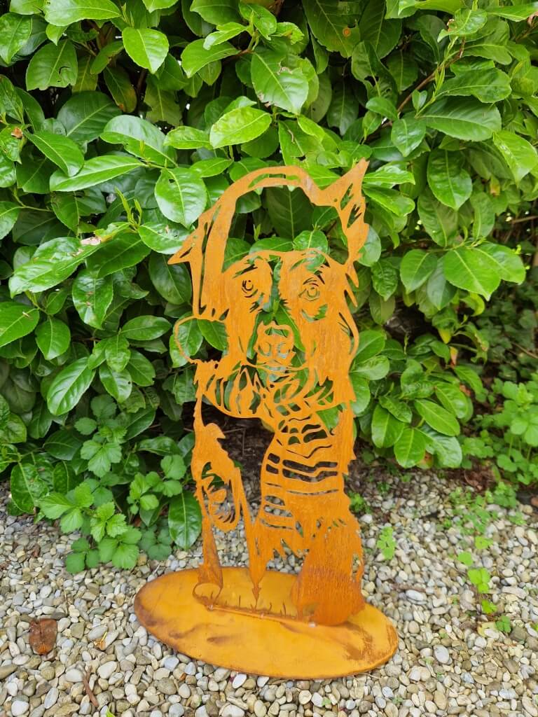 Die etwas andere Deko für die Weihnachtszeit ist unser "Weihnachtshund" aus Edelrost auf Platte.