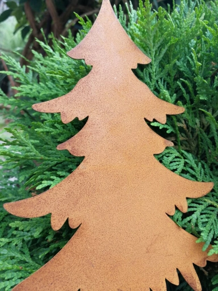 Ein kleiner Begleiter für die Weihnachtszeit ist dieser schlichte Topfstecker Tanne in Rostoptik.