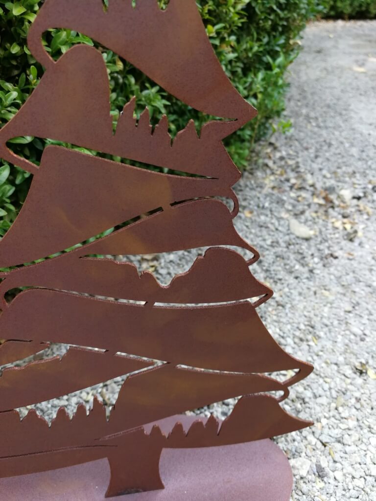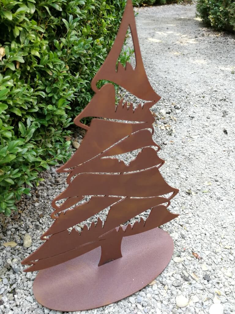 Eine schöne, stimmungsvolle Dekoration für den Winter und zu Weihnachten ist die Wintertanne aus Edelrost.