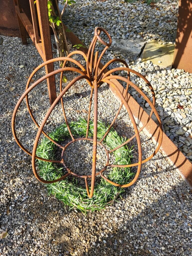 Der Draht Kürbis hat eine stattliche Größe und kann wunderbar herbstlich dekoriert werden.