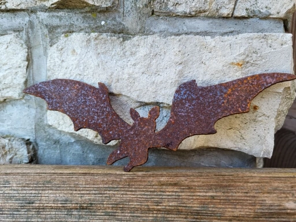 Die naturgetreu gearbeitete Fledermaus kann auch aufgehängt werden. Hierzu können beispielsweise kleine Löcher in die Flügel gebohrt werden.