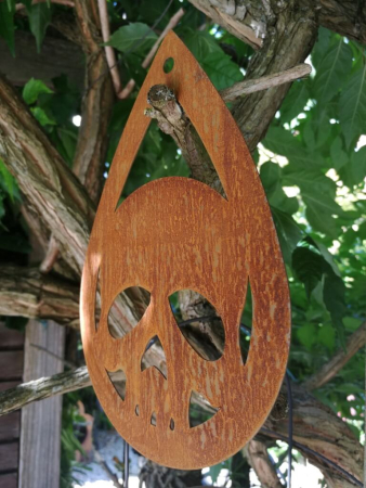 Edelrost Halloween Hänger Totenkopf, tropfenform
