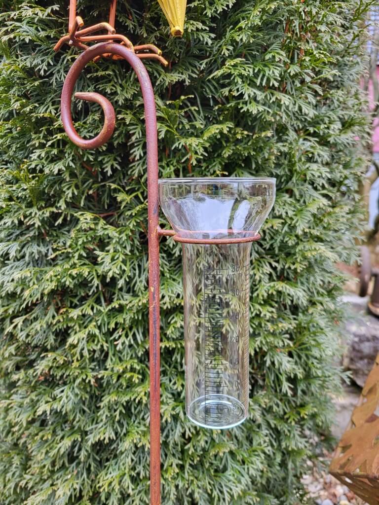 Das große Glas sammelt fleißig den Regen und zeigt Ihnen die entsprechende Menge an.