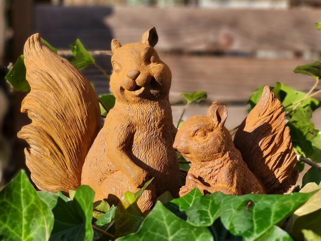 Ein putziger Geselle ist unser Eichhörnchen aus Gusseisen mit Edelrostfinish.