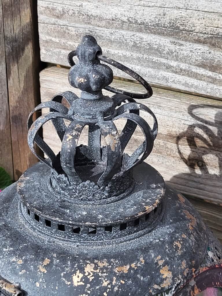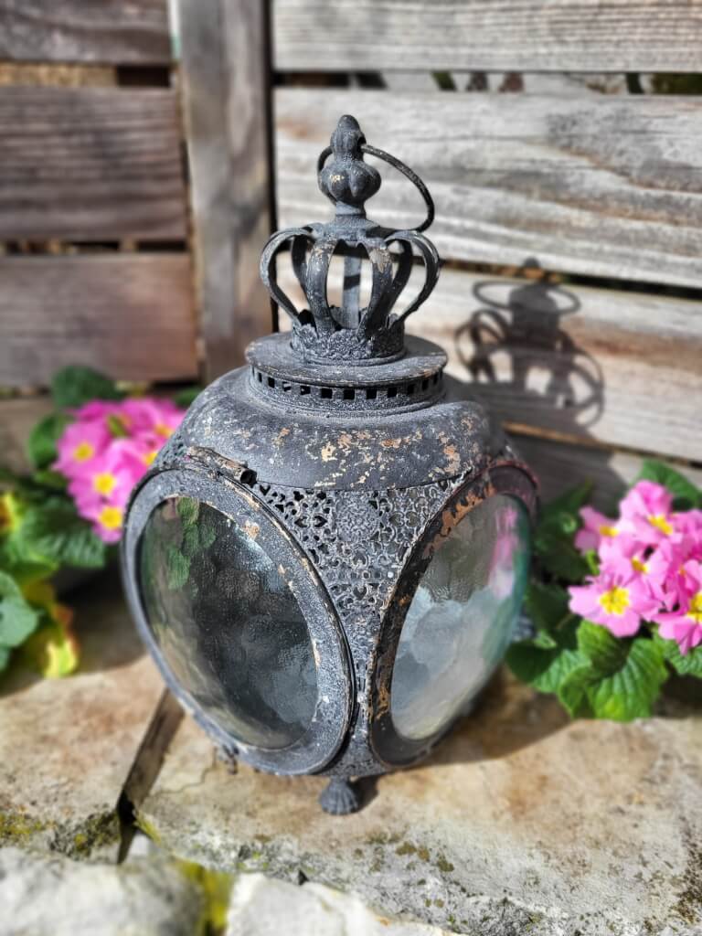 Diese antikschwarze Metall Laterne erinnert fast ein wenig an eine Schiffslaterne aus vergangener Zeit.