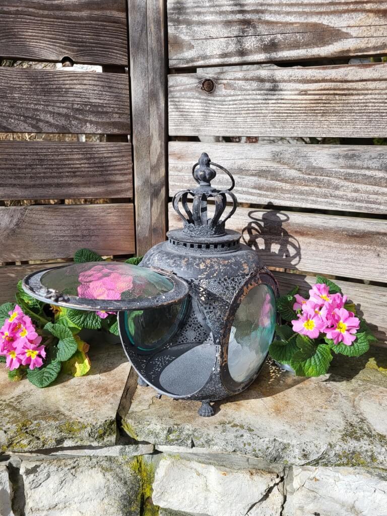 Die Laterne kann leicht geöffnet und mit Kerze oder Teelicht schön in Szene gesetzt werden.