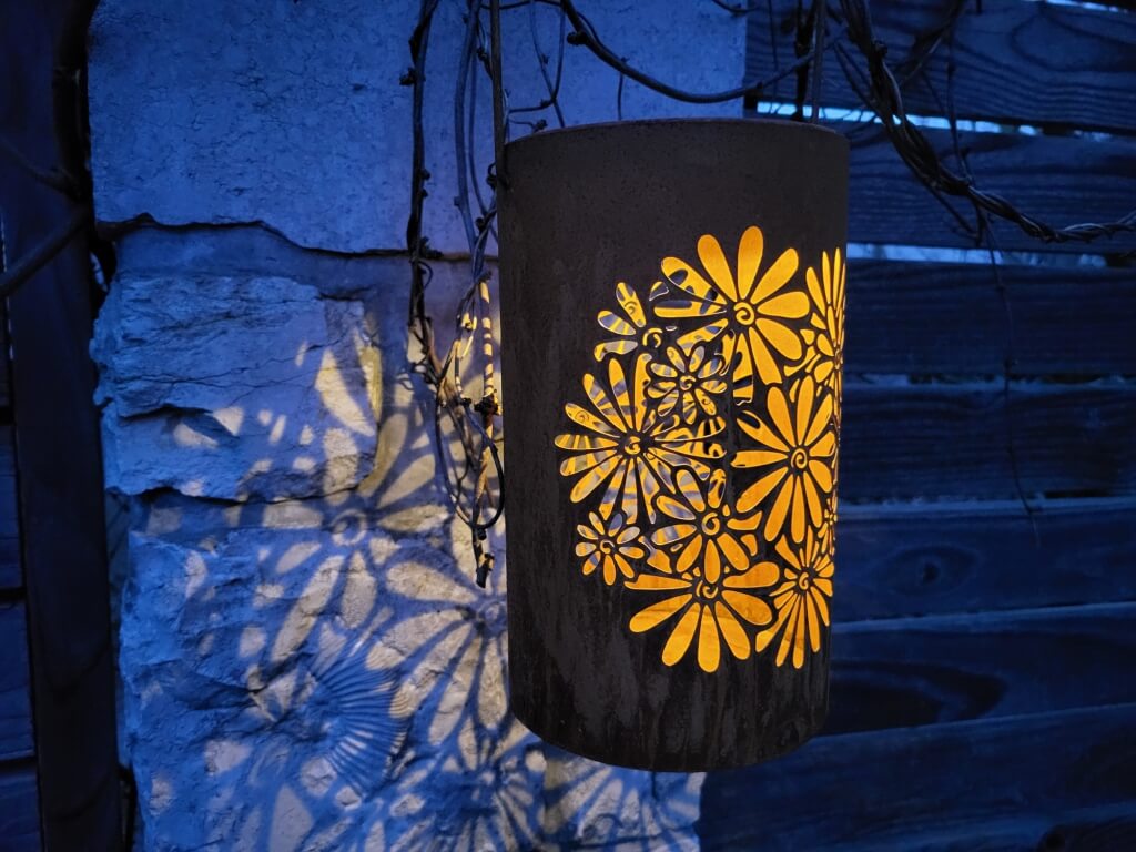 Die Laterne kann direkt an der Kette aufgehängt werden und ist mit einer warmweißen LED Lampe versehen.